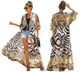 Letnia Tunika Plażowa Długa Sukienka Damska Na Plażę Zwiewna Narzutka Boho