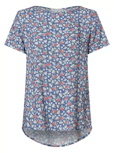 Sidona Bluzka damska z nadrukiem kwiatowym 10130380, niebieska wełna biała wielokolorowa, L, Niebieska wełna biała, wielokolorowa, L