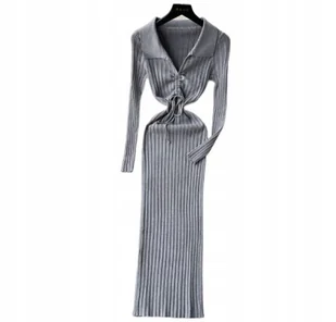 Damska dzianinowa sukienka prążkowana szara Model: S-79 AUKCJA DOTYCZY SUKIENKI W ROZMIARZE UNIWERSALNYM (prosimy sugerować się wymiarami podanymi poniżej ) ...