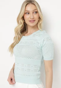 Miętowa Ażurowa Bluzka z Krótkim Rękawem Alirada
