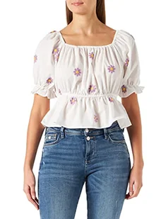 myMo Damska haftowana bluzka Cropped, biały jasnofioletowy, M