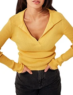 NA-KD Damska bluzka z dzianiny z długim rękawem z piqué, Złota musztarda, M