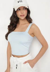Niebieski Dopasowany Top z Wiskozą na Szerokich Ramiączkach Limare