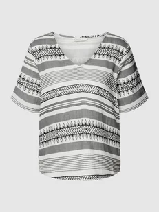 Only nora wzorzysta bluzka S Bluzka marki Only miękka bawełna dekolt V krótkie rękawy prosty fason podszewka Długość całkowita (cm): 55 Szerokość pod pachami (cm): 48 Dekolt: serek/dekolt V Fason: klasyczny Kolor: biały, czarny Marka: