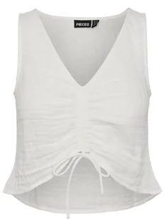 PIECES BIAŁY BLUZKA NA RAMIĄCZKACH Z MARSZCZENIEM M XQA