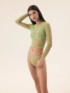 Bluza cu mânecă lungă Selina de la Bloovia, în galben-verde, încântă prin combinația sa evidentă de culori intense și materiale delicate. Plasa transparentă și dantela florală îi conferă lejeritate și farmec subtil, în timp ce decolteul rotund accentuează gâtul și adaugă eleganță. Topul crop ajustat expune frumos silueta, iar mânecile lungi din dantelă echilibrează look-ul, adăugând o notă romantică. Selina Bloovii este alegerea perfectă pentru femeile care doresc să combine stilul îndrăzneț cu o notă de eleganță senzuală.