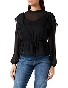 Q/S designed by Bluzka damska z długim rękawem Regular Fit Blouse, szary/czarny., 32 PL