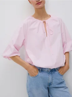 Reserved - Bawełniana bluzka z wiązaniem - różowy