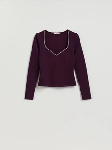 Reserved - Bluzka z błyszczącą aplikacją - ciemnofioletowy