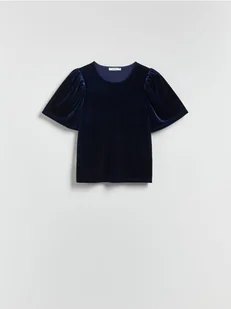 Reserved - Bluzka z bufiastymi rękawami - granatowy