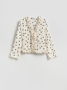 Reserved - Bluzka z dekoracyjną falbaną - złamana biel