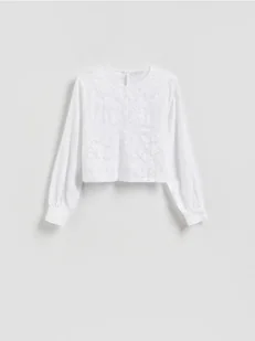 Reserved - Bluzka z haftowanym wzorem - złamana biel