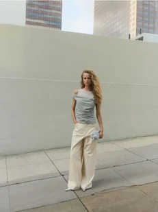 Bluzka o dopasowanym kroju, wykonana z dzianiny z metalizowana nicią.
