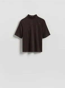 Reserved - Bluzka z metalizowaną nitką - ciemnobrązowy