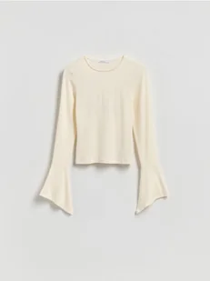 Reserved - Bluzka z rozszerzanymi rękawami - złamana biel