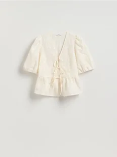 Reserved - Bluzka z wiązaniami - kremowy