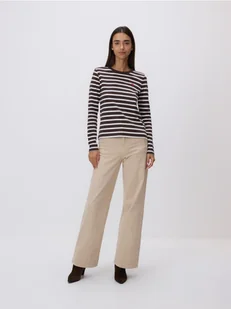 Reserved - Longsleeve z haftem - ciemnobrązowy