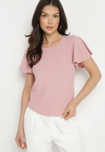 Różowa Bluzka Ozdobiona Szerokimi Rękawami Sunlisa