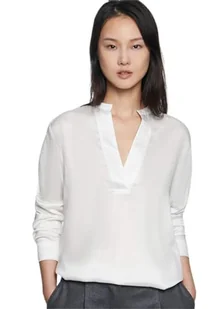 Seidensticker Damska bluzka – lekko lejąca się, jednokolorowa tunika z dekoltem w kształcie litery V i optymalny komfort noszenia – z długim rękawem – satyna, White Alyssum, 40 PL