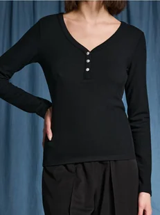 Sinsay - Bluzka z długimi rękawami - czarny - dekolt V,długie rękawy,ozdobne guziki
