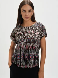 Komfortowa bluzka z efektownym wzorem etno to idealny model dla miłośniczek idywidualnego stylu. Wykonana została w 100% z wiskozy.