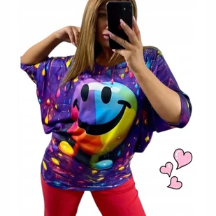 SWETERKOWA BLUZKA DAMSKA wesoła nietoperz luźna wygodna tunika 40 42 L