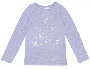 Szara bluzka o klasycznym fasonie, z motywem Myszki Mickey. Bluzka z długimi prostymi rękawami, dekolt wykończony delikatnym, nieuciskowym ściągaczem. Minima...