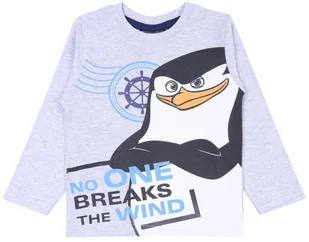 Szara bluzka, z okrągłym dekoltem, na długi rękaw. Z przodu wizerunek pingwina, postaci z filmu animowanego "Pingwiny z Madagaskaru". Dekolt wykończony delik...