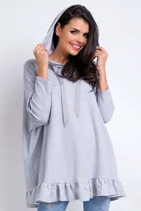 Szara Oversizowa Bluza z Kapturem Wykończona Falbanką