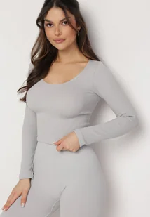 Szara Prążkowana Bluzka o Skróconym Dopasowanym Fasonie Caladiva