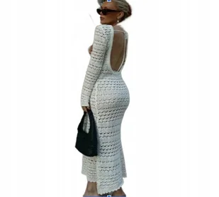 Ażurowa sukienka plażowa maxi z rozcięciem na plecach w kolorze białym. Model: S-73 Prześliczna biała sukienka z ażurowym wzorem, wykonana z lekkiego, zwiewn...