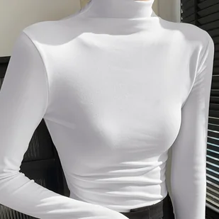 TEMU 1 Jednokolorowa Podstawowa Casual Koszulka, Okrト�gナZ Dekolt DナVgi Rト冖aw Elastyczna Bluza, Damski Top, Wszechstronny Top,Odzieナシ Casual,