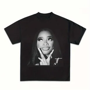 TEMU 1 szt. Damska koszulka z krótkim rękawem i odważnym nadrukiem liter "J" - Miękki oddychający materiał, luźny krój, czarno-biała , idealna na