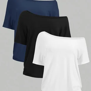 TEMU 3 szt. Damski casualowy zestaw koszulek z asymetrycznymi ramionami i krótkim rękawem w wielokolorowym wzorze, trzy części