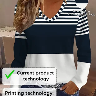 TEMU Bluzka Damska z Dekoltem w Serek - Kolorowy Blok Granicujący, Biało-Granatowa, Oddychająca Koszulka na Codzień i Wakacje, Wygodna Bluzka do