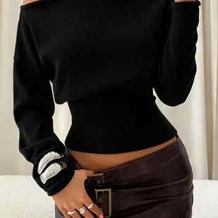 TEMU Bluzka Damska z Odkrytymi Ramionami/Jednoramienna - Krótka, H-Line, Regular Fit, z Opadającymi Rękawami, Jednokolorowa, Elegancka Koszula na