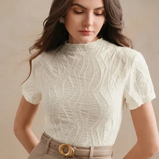TEMU Wiosenno-Letni Szykowny Żakardowy Top z Krótkim Rękawem i Pół-Golfem