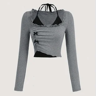 TEMU Jesienna Nowość – Top z Wiązaniem na Szyi i Splicingiem NS702