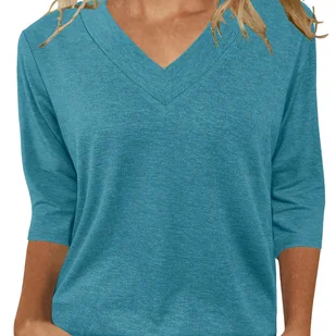 TEMU Bluzka Damska z Rękawami 3/4 i Dekoltem w Serek - Oddychająca, Luźna Koszula na Co Dzień, Jednokolorowa Wszechsezonowa do Stylizacji i
