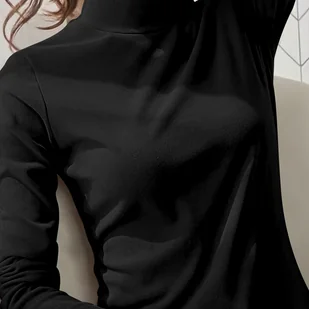 TEMU Bluzka z długim rękawem i półstójką, stylowa i codzienna na jesień i zimę, ciepłe ubrania damskie.