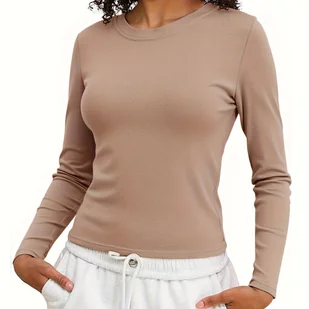 TEMU Okrągły Dekolt Bielizna Damska Jesień/ Nowy Styl T-shirt Casual Modna Ciepła Bluzka dla Kobiet