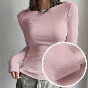 TEMU Damska wysokoelastyczna jednokolorowa koszulka z okrągłym dekoltem - Długi rękaw, ciepła bluzka na zimę, nadająca się do prania w pralce,