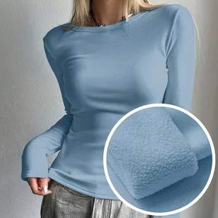 TEMU Damska wysokoelastyczna jednokolorowa koszulka z okrągłym dekoltem - Długi rękaw, ciepła bluzka na zimę, nadająca się do prania w pralce,