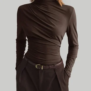 TEMU Elegancka i Szykowna Bluzka z Plisami dla Kobiet, Dopasowana, Długi Rękaw, Baza na Jesień i Zimę, Casual i Dojazdowa