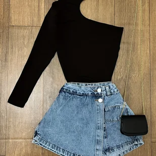 TEMU Damski Modny Seksowny Jednokolorowy Krótki Długi Rękaw Nieregularny Kołnierz Projektant T-Shirt Top PB-1259