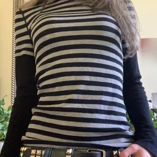TEMU Y2K Jesień/ Casual Modna Długa Rękaw Pasiasta Bluzka 2w1 z Nadrukiem dla Kobiet