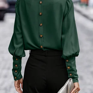 TEMU Elegancka Bluzka z Długim Rękawem i Okrągłym Dekoltem - Koszulka z Kołnierzykiem, Regularny Fason H-Line, Jednokolorowa, Pranie w Praniu