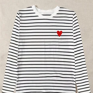 TEMU Elegancka i stylowa odzież damska z haftowanym sercem i okrągłym dekoltem.