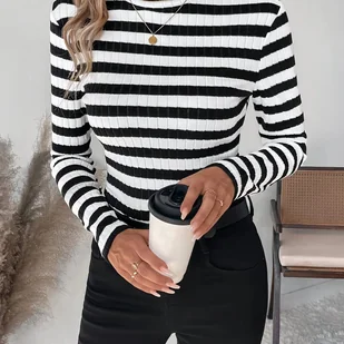 TEMU Elegancka i stylowa damska koszulka w paski z długim rękawem i dopasowanym krojem