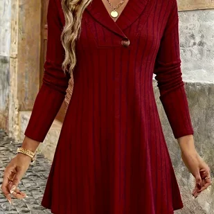 TEMU Elegancka Tunika Damska z Dekoltem w Serek i Długim Rękawem - Bluzka z Batwing, Średnioelastyczna, Jednokolorowa Koszula na Wiosnę, i Jesień,